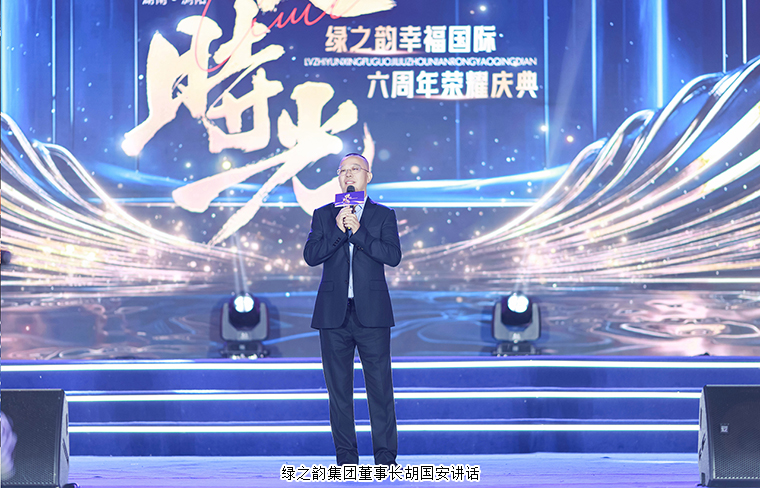 在全場最為熱烈的掌聲中,綠之韻集團(tuán)董事長胡國安上臺(tái)發(fā)表重要講話。胡國安董事長首先向綠之韻幸福國際的六周歲生日送上了最真摯的祝福,對今天獲得獎(jiǎng)項(xiàng)的所有市場精英表示熱烈的祝賀。他向未能來到現(xiàn)場,通過視頻等方式收看綠之韻幸福國際六周年慶典的所有幸福國際家人們致以誠摯的問候和衷心的感謝。他表示,每一次走進(jìn)幸福國際的會(huì)場,內(nèi)心總是充滿感動(dòng)與振奮。今天,站在這個(gè)舞臺(tái)上,看到所有獲獎(jiǎng)的精英用行動(dòng)詮釋了榜樣的力量,這份堅(jiān)持與付出令人由衷敬佩。近年來,"我很健康,我在傳播健康的路上,我在從事健康的事業(yè)"這三句話已成為我們共同的心聲?;赝G之韻幸福國際成立之初,恰逢國家發(fā)布《2020-2030健康中國發(fā)展規(guī)劃》,我們以敏銳的行業(yè)洞察,順勢而為,與國家政策同頻共振。剛才與夏總一同回顧各團(tuán)隊(duì)發(fā)展歷程時(shí),那些奮斗的足跡與成長的軌跡,讓我深感欣慰。今日臺(tái)上每一位獲獎(jiǎng)?wù)叩臉s耀,都印證了成功的真諦——堅(jiān)持。而面向未來,若問持續(xù)成功的秘訣,我想那便是:堅(jiān)持再堅(jiān)持!最后跟現(xiàn)場的家人們分享一句話:人生之河,奔騰向前,我心堅(jiān)定,為夢前行。愿所有綠之韻家人,都能在這條健康事業(yè)的道路上堅(jiān)定前行,讓夢想照進(jìn)現(xiàn)實(shí),共同書寫更輝煌的篇章。