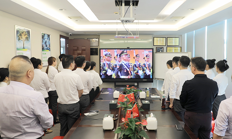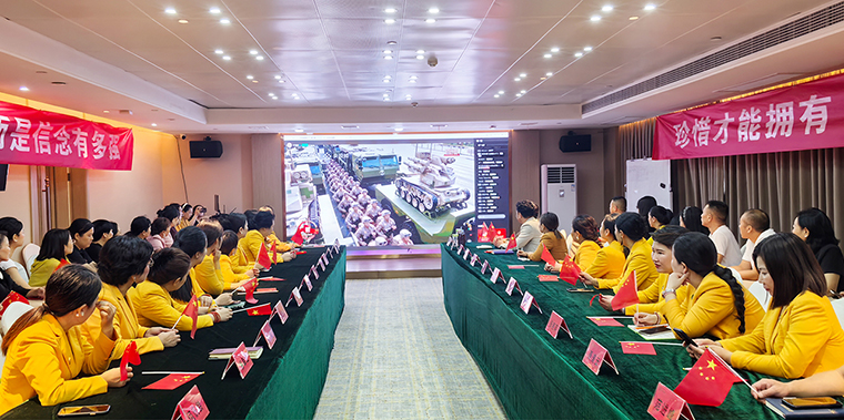 2025年9月3日上午,紀(jì)念中國(guó)人民抗日戰(zhàn)爭(zhēng)暨世界反法西斯戰(zhàn)爭(zhēng)勝利80周年閱兵式在北京天安門廣場(chǎng)隆重舉行。為深刻銘記中國(guó)人民抗日戰(zhàn)爭(zhēng)暨世界反法西斯戰(zhàn)爭(zhēng)勝利的偉大歷史,弘揚(yáng)愛國(guó)主義精神和革命英雄主義傳統(tǒng),進(jìn)一步增強(qiáng)企業(yè)凝聚力和黨員黨性修養(yǎng),綠之韻集團(tuán)全體職工、黨員、各市場(chǎng)家人集中觀看了這場(chǎng)盛大閱兵盛典,感受祖國(guó)風(fēng)采,凝聚奮進(jìn)力量。