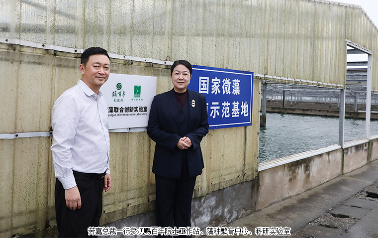 在簽約儀式前,勞嘉總裁一行應(yīng)邀參觀了賜百年院士工作站、螺旋藻繁育中心、藻種資源庫、光生物反應(yīng)器實驗池及CNAS認(rèn)證科研中心,對賜百年在螺旋藻種質(zhì)培育、規(guī)?;B(yǎng)殖及精深加工領(lǐng)域的專業(yè)水準(zhǔn)給予高度評價。其中,院士工作站作為企業(yè)高層次科研平臺,匯聚了微藻研究領(lǐng)域的頂尖專家團(tuán)隊,為產(chǎn)業(yè)創(chuàng)新發(fā)展提供了強有力的支持。在簽約儀式環(huán)節(jié),勞嘉總裁與高志剛董事長共同簽署戰(zhàn)略合作協(xié)議,并為“綠之韻集團(tuán)-賜百年微藻聯(lián)合創(chuàng)新實驗室”揭牌。聯(lián)合創(chuàng)新實驗室將依托賜百年的尖端科研實力與綠之韻的產(chǎn)學(xué)研銷轉(zhuǎn)化優(yōu)勢,聚焦螺旋藻功能成分提取與功效驗證,共同推進(jìn)螺旋藻創(chuàng)新產(chǎn)品的研發(fā)與市場應(yīng)用。