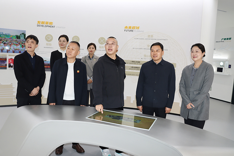 調(diào)研組首先參觀了綠之韻集團(tuán)數(shù)智化科技展廳。展廳設(shè)計(jì)深度融入企業(yè)“水之道”文化內(nèi)核,以水的流動(dòng)與滋養(yǎng)為敘事脈絡(luò),融合東方哲學(xué)與西方技術(shù),展現(xiàn)企業(yè)的發(fā)展初心與文化積淀。展廳運(yùn)用數(shù)字互動(dòng)技術(shù),打造沉浸式智慧展示空間,多維度呈現(xiàn)綠之韻的企業(yè)文化、發(fā)展歷程、黨建成果、公益實(shí)踐、產(chǎn)品體系、科研布局與戰(zhàn)略愿景。胡國(guó)安董事長(zhǎng)向調(diào)研組詳細(xì)介紹了企業(yè)的發(fā)展脈絡(luò),展廳內(nèi)陳列的最新科技成果與創(chuàng)新產(chǎn)品,生動(dòng)體現(xiàn)了綠之韻在大健康產(chǎn)業(yè)的前沿探索與扎實(shí)積累。