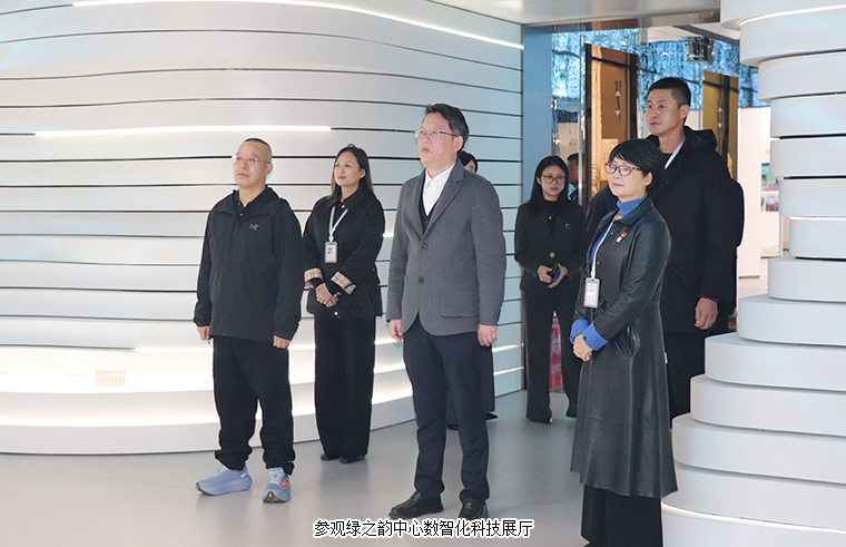 隨后,調(diào)研組參觀了綠之韻中心數(shù)智化科技展廳。展廳以“水之道”為企業(yè)文化內(nèi)核,以水的流動(dòng)與滋養(yǎng)為敘事脈絡(luò),融合東方哲學(xué)與西方技術(shù),展現(xiàn)企業(yè)的發(fā)展初心與人文情懷。通過(guò)數(shù)字化互動(dòng)技術(shù)和智慧展陳手段,立體呈現(xiàn)了綠之韻集團(tuán)的企業(yè)文化、發(fā)展歷程、黨建公益、產(chǎn)品理念、科研實(shí)力及戰(zhàn)略愿景。胡國(guó)安董事長(zhǎng)向調(diào)研組詳細(xì)介紹了企業(yè)的創(chuàng)新路徑與發(fā)展成果,展廳內(nèi)一系列最新科技成果與產(chǎn)品,生動(dòng)體現(xiàn)了綠之韻在大健康產(chǎn)業(yè)中的持續(xù)探索與實(shí)踐成效。