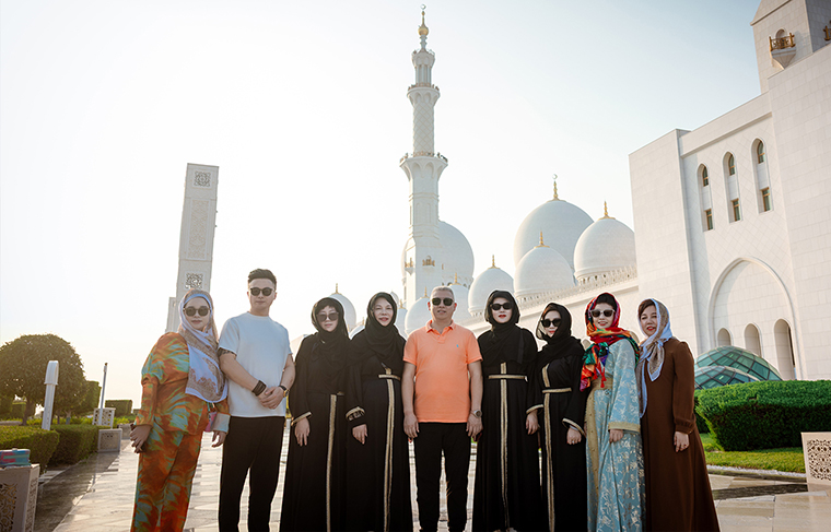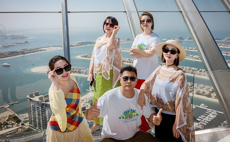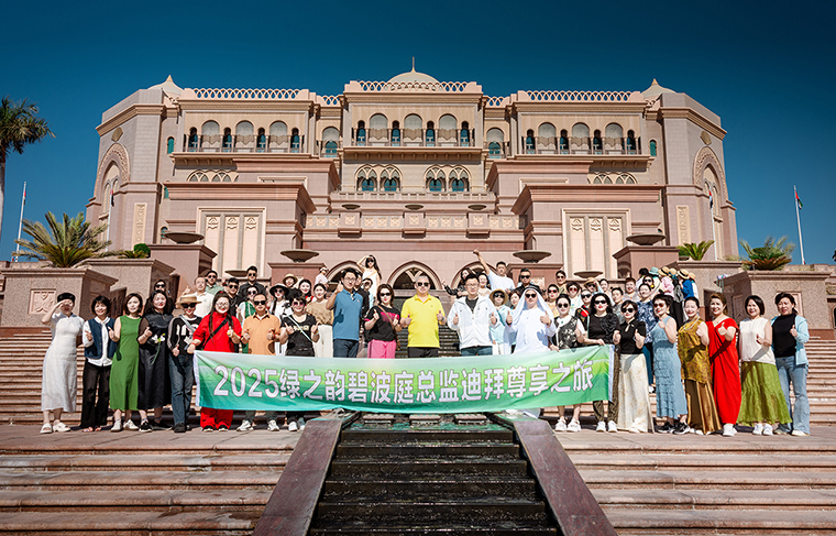 綠韻之旅,跨越山海。11月7日至12日,來自全國各地的綠之韻碧波庭家人們,在綠之韻集團(tuán)常務(wù)副總裁胡均安、綠之韻集團(tuán)市場管理中心市場總監(jiān)劉磊的帶領(lǐng)下,飛抵被譽(yù)為“海灣明珠”的迪拜,展開為期六天五晚的奢享旅程。旅游的首站來到世界之巔——哈利法塔。巍峨聳立于城市中心,這座高達(dá)828米的建筑奇跡,以其磅礴氣勢直擊心靈。乘梯凌空,俯瞰整座城市在腳下延展,綠之韻家人們無不感嘆人類智慧與自然的完美交融。