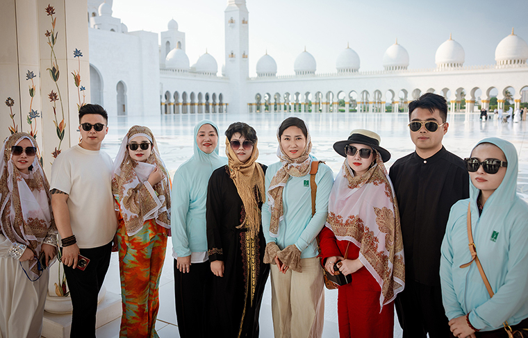 謝赫扎伊德清真寺,為紀(jì)念謝赫扎耶德而建,是伊斯蘭建筑的瑰麗典范。純白漢白玉雕琢的圓頂與尖塔,在日光下熠熠生輝。綠之韻人漫步其間,沉浸于神圣與寧靜,感悟信仰與文明的力量。