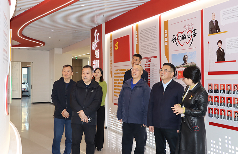 調(diào)研組一行先后參觀了綠之韻中心數(shù)智化科技展廳和黨建教育陣地。數(shù)智化科技展廳以企業(yè)獨(dú)特的“水之道”文化為核心設(shè)計(jì)理念,巧妙運(yùn)用水的流動(dòng)性與滋養(yǎng)特質(zhì)作為空間敘事主線,融合東方哲學(xué)智慧與西方先進(jìn)技術(shù),生動(dòng)詮釋了綠之韻的發(fā)展理念與文化傳承,并通過數(shù)字化互動(dòng)展示系統(tǒng)構(gòu)建了一個(gè)集視覺、聽覺、觸覺于一體的沉浸式智慧體驗(yàn)空間。調(diào)研組在此全面了解了綠之韻的企業(yè)文化、發(fā)展歷程、黨建成果、公益實(shí)踐、產(chǎn)品體系、科研創(chuàng)新與戰(zhàn)略規(guī)劃,胡國(guó)安董事長(zhǎng)系統(tǒng)介紹了企業(yè)的發(fā)展脈絡(luò),展廳內(nèi)展示的最新科研突破與創(chuàng)新產(chǎn)品系列,充分彰顯了綠之韻在大健康產(chǎn)業(yè)的前沿布局與深厚積累。在黨建教育陣地,劉云書記向調(diào)研組匯報(bào)了企業(yè)非公黨建的特色成果。綠之韻黨組織自2006年成立黨支部后,歷經(jīng)多年發(fā)展,已構(gòu)建起以黨委為核心、工會(huì)與公益基金會(huì)協(xié)同的新格局。企業(yè)通過推進(jìn)“三色、三有、三亮”工程及“指導(dǎo)式、責(zé)任式、溫情式”管理等系列創(chuàng)新舉措,形成了特色黨建品牌,有力推動(dòng)了黨建與發(fā)展的深度融合。