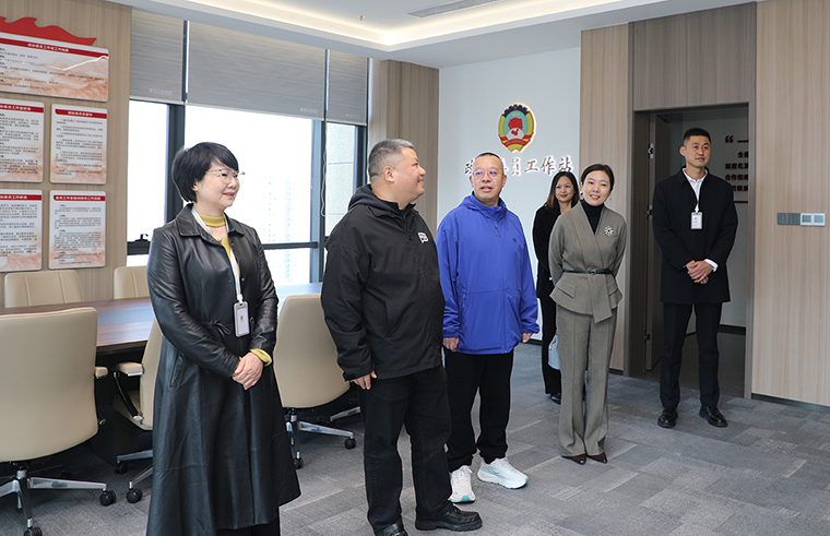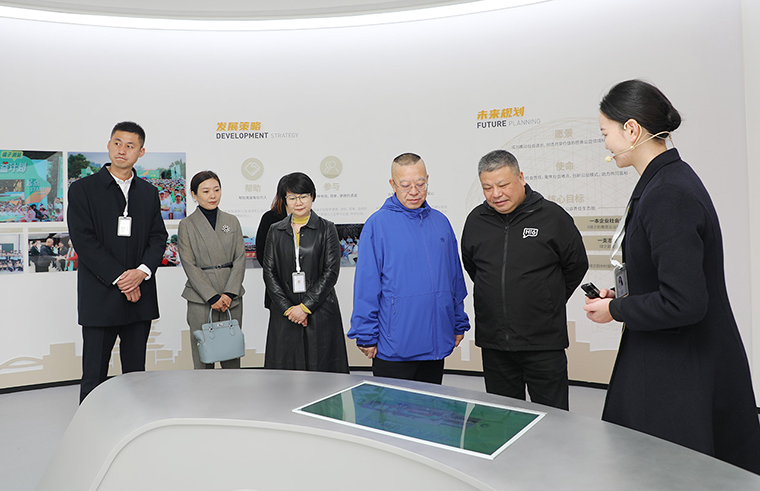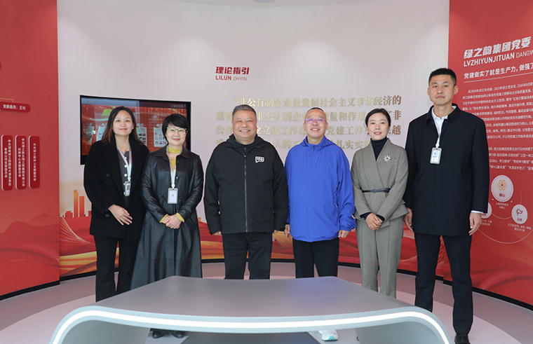 陳剛主席一行先后走進綠之韻中心數(shù)智化科技展廳、黨建教育陣地與政協(xié)委員工作站。數(shù)智化科技展廳以 “水之道” 文化為核心設(shè)計理念,融合東方哲學(xué)智慧與西方先進技術(shù),通過數(shù)字化互動系統(tǒng)構(gòu)建起多感官沉浸式體驗空間,全面展現(xiàn)了企業(yè)發(fā)展歷程、企業(yè)文化、全鏈條產(chǎn)品體系、核心科研突破及公益實踐足跡。在黨建教育陣地,劉云書記詳細匯報了企業(yè)非公黨建成果:自2006年成立黨支部以來,企業(yè)已構(gòu)建起黨委為核心、工會與公益基金會協(xié)同聯(lián)動的黨建格局,創(chuàng)新推行 “三色三有三亮” 工程與 “三維管理模式”,打造特色黨建品牌,實現(xiàn)黨建與企業(yè)發(fā)展同頻共振。
