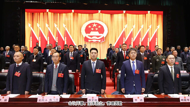 12月20日上午8點(diǎn)30分,大會(huì)在雄壯的國(guó)歌聲中開(kāi)幕。大會(huì)由安化縣人大常委會(huì)主任陳飛燕主持。本次大會(huì)的執(zhí)行主席是陳飛燕,(以下按姓氏筆畫(huà)為序)王定巖、龍要平、盧映云、劉斌、劉百戰(zhàn)、劉建輝、李益、李志生、李艷云、羅偉民、胡能華、胡能新、夏瓊玲、郭劍鋒、潘文劍。安化縣領(lǐng)導(dǎo)李進(jìn)、李德輝、謝可贊、廖小甫、郭環(huán)球、楊正華、楊頎斌、陳曉明等在主席臺(tái)就座。老領(lǐng)導(dǎo)蔣金云、蔣躍登、伍湘安在主席臺(tái)就座。大會(huì)應(yīng)到代表330人,實(shí)到299人,因事因病請(qǐng)假31人,符合法定人數(shù)。安化縣人大代表、益陽(yáng)市工商聯(lián)(總商會(huì))副會(huì)長(zhǎng)、綠之韻集團(tuán)常務(wù)副總裁胡均安參加大會(huì)。