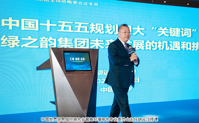 在時(shí)代浪潮奔涌向前的新征程上,唯有錨定國家戰(zhàn)略航向、行業(yè)發(fā)展趨勢,才能把握發(fā)展先機(jī)。會上,綠之韻集團(tuán)企業(yè)戰(zhàn)略發(fā)展顧問、中國世界貿(mào)易組織研究會營商環(huán)境研究專業(yè)委員會主任胡遠(yuǎn)江授課。他以專業(yè)視角深度拆解國家“十五五”規(guī)劃四大關(guān)鍵詞,系統(tǒng)剖析了規(guī)劃背后蘊(yùn)藏的產(chǎn)業(yè)機(jī)遇與行業(yè)挑戰(zhàn),精準(zhǔn)對接綠之韻集團(tuán)的戰(zhàn)略根基與發(fā)展?jié)摿ΑK岢?,要繼續(xù)以高質(zhì)量發(fā)展為引領(lǐng),構(gòu)建新發(fā)展格局,培育世界競爭力;以創(chuàng)新驅(qū)動為核心,提升企業(yè)創(chuàng)新能力,強(qiáng)化科技自立自強(qiáng);以綠色發(fā)展為路徑,加快發(fā)展方式轉(zhuǎn)型,踐行綠色低碳理念;以共同富裕為目標(biāo),實(shí)施創(chuàng)業(yè)優(yōu)先戰(zhàn)略,賦能創(chuàng)業(yè)者成長。國家市場監(jiān)管總局課題組專家、北大EMBA總裁班特聘教授李征,國家市場監(jiān)管總局行政學(xué)院特邀講師苑芳軍帶來主題分享。精彩的分享令在場家人們深受啟發(fā)、倍感振奮。