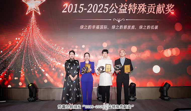 隨后,綠之韻集團(tuán)總裁勞嘉為綠之韻幸福國際、綠之韻碧波庭、綠之韻低碳頒發(fā)“2015-2025公益特殊貢獻(xiàn)獎(jiǎng)”。這份榮譽(yù),不僅是對(duì)他們善行足跡的銘刻,更是對(duì)綠之韻十年如一日公益初心的見證。從鄉(xiāng)村振興到扶危濟(jì)困,從圓夢(mèng)行動(dòng)到書香助學(xué),他們的行動(dòng)如細(xì)雨潤物,凝聚成一股溫暖而持久的力量。公益之路,從來不是獨(dú)行;這份榮譽(yù),同樣屬于所有為愛奔赴的綠之韻人。