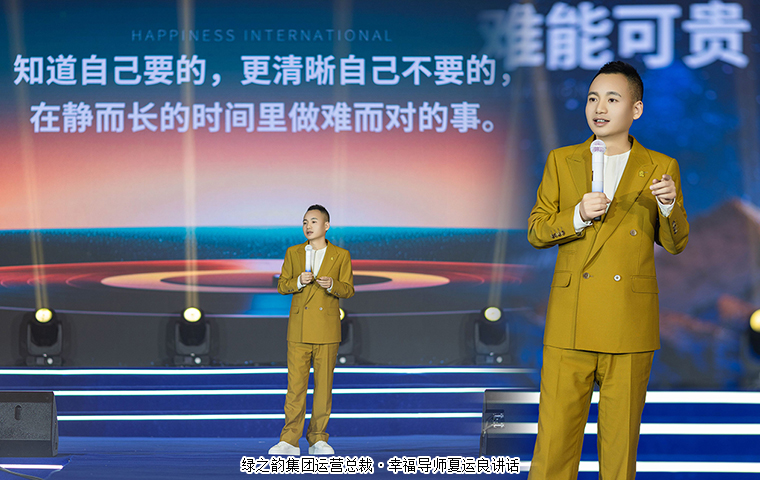 在全場最為熱烈的掌聲與歡呼聲中,綠之韻集團(tuán)運營總裁、幸福導(dǎo)師夏運良講話。他以“難”字總結(jié)了過去的一年。他指出,面對社會與企業(yè)層面的多重挑戰(zhàn),團(tuán)隊?wèi){借堅持與專注,將“難”轉(zhuǎn)化為“難得”和“難能可貴”的成長。他表示,2026年將步入幸福國際“2.0時代”。2.0時代我們要做好兩句話。第一句是“從心出發(fā)”,心是“初心”的心。他表示,從心出發(fā)要堅持利他之心、利民之心、利眾之心,真正以用戶健康為本,推動“科技讓中醫(yī)養(yǎng)生進(jìn)萬家”。