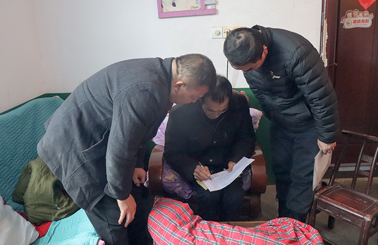 在北園村塅里組,志愿者們見到了67歲的退伍老兵傅芳其。傅老自身患有嚴(yán)重風(fēng)濕,卻十余年如一日地悉心照料癱瘓?jiān)诖驳钠拮?。兒子為了幫忙照顧父母,只能在附近打零工。胡均安常?wù)副總裁向傅老深深致敬:“您用行動詮釋了什么是相守相伴?!币环菸繂柶?,一句“辛苦了”,是向這份平凡而偉大的堅(jiān)守致以的崇高敬意。