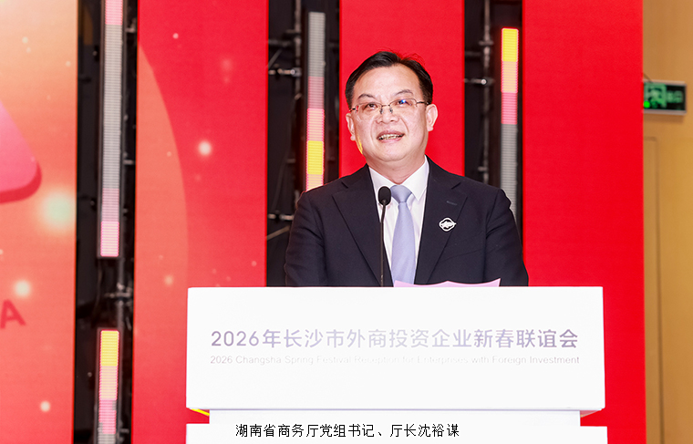2月1日,“環(huán)球薈萃 逐夢星城”2026年長沙市外商投資企業(yè)新春聯(lián)誼會在長沙舉行。湖南省商務廳黨組書記、廳長沈裕謀,長沙市人民政府黨組成員、副市長鄭平,長沙市政協(xié)副主席陳劍文等領導出席活動。長沙市商務局黨組書記、局長吳照舒主持,省市相關部門、各區(qū)縣(市)、園區(qū)分管領導,商務部門負責人,與來自全球各地的外資企業(yè)代表、商會協(xié)會負責人共百余人歡聚一堂,共敘友誼、共謀發(fā)展。綠之韻集團黨委書記劉云率黨員代表參加活動,由瀏陽經(jīng)開區(qū)選送的綠之韻集團編排歌舞節(jié)目《世界贈與我的》精彩亮相市級聯(lián)誼舞臺,以藝術形式展現(xiàn)了綠之韻積極投身區(qū)域發(fā)展建設的責任擔當與文化自信。