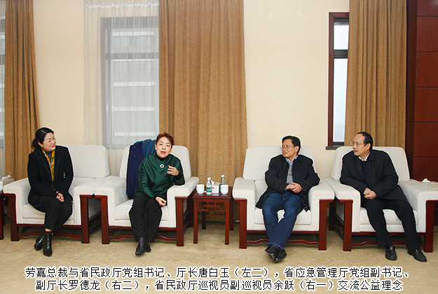 會議由湖南省民政廳巡視員鄧磊主持。會議伊始,湖南省民政廳黨組書記、廳長唐白玉首先向慷慨捐贈的愛心企業(yè)致以崇高的敬意,對長期支持民政事業(yè)發(fā)展的領(lǐng)導(dǎo)表示衷心的感謝。她說道,在慶祝改革開放40周年大會上,黨中央發(fā)出了“順應(yīng)民心、尊重民意、關(guān)注民情、致力民生”的號召,要讓廣大困難群體獲得更多更直接更實在的獲得感、幸福感和安全感。當前,天氣轉(zhuǎn)寒、元旦將至、春節(jié)臨近,妥善解決困難群眾、受災(zāi)群眾的生活,是我們最牽掛的大事,也是全社會最牽掛的大事。此次“迎新春送溫暖獻愛心”活動所募得的愛心款物都將在第一時間發(fā)往貧困地區(qū),切實將黨、政府以及社會各界愛心人士的溫暖送到千家萬戶,讓這場愛心的接力賽延續(xù)下去……