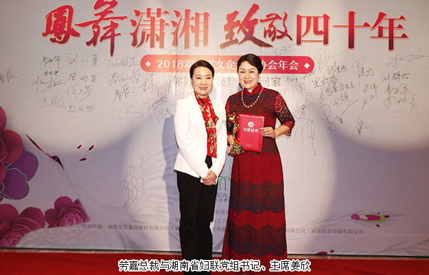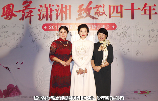 建功新時代,綻放“她風采”,鳳舞瀟湘正當時。2018年11月23日,湖南省女企業(yè)家協(xié)會2018年度工作會議暨年度表彰頒獎大會在長沙召開,湖南省婦聯(lián)黨組書記、主席姜欣,湖南省女企業(yè)家協(xié)會會長張海霞,湖南省工商聯(lián)女企業(yè)家商會會長吳建平,湖南省工商聯(lián)女企業(yè)家商會常務副會長,綠之韻集團董事總裁、綠之韻公益基金會理事長勞嘉,綠之韻集團黨委書記劉云,中國內地著名主持人仇曉等領導嘉賓出席會議,與來自三湘四水的女企業(yè)家們歡聚一堂,訴情、抒懷、感恩,向改革開放四十周年獻禮。