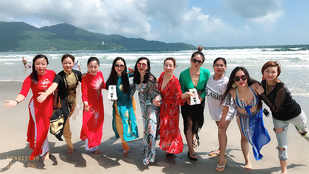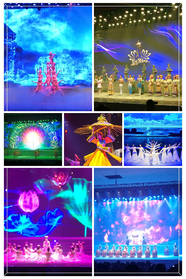 乘坐專機(jī)一抵達(dá)越南峴港,綠之韻家人們感受到了屬于峴港的熱辣風(fēng)情?!恩攘s港秀》是峴港唯一的一臺(tái)大型越南風(fēng)情文藝歌舞秀,邀請(qǐng)了越南著名舞蹈藝人進(jìn)行演出,演出中傳遞出越南獨(dú)有的斗笠、蓮花、奧黛女子、占婆等文化元素,給家人們帶來了一場(chǎng)精彩紛呈的大型視覺盛宴,緩解了長途飛行的疲乏。