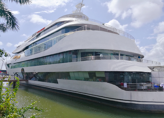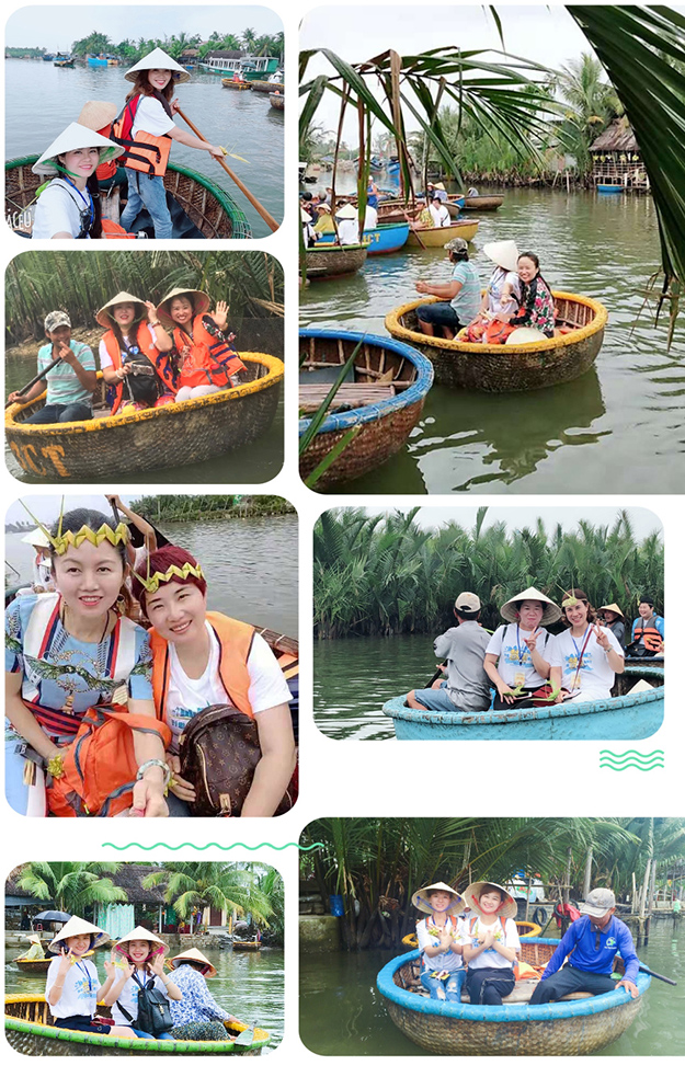 戴上一頂斗笠,坐著越南當(dāng)?shù)靥赜械聂せ褚晃灿昔~穿行在水椰林間,這場(chǎng)景豈止是一句愜意能盡述的。只見水椰林中還建有竹橋、垂釣亭,水中還投放了魚苗,家人們也能在此體驗(yàn)一把水椰林垂釣的樂趣。最為精彩刺激的,莫過于觀看艄公的簸箕show了,綠之韻家人們坐在船上,艄公用船桿讓簸箕船在水中高速旋轉(zhuǎn)起來,船身開始上下左右的翻騰,坐在船上的家人們一個(gè)個(gè)被嚇的尖叫不已,旁邊觀看簸箕船表演的家人們則一個(gè)個(gè)拍手叫好。家人們爽朗的笑聲飄蕩在迦南島上,成為最動(dòng)人的風(fēng)景配樂。