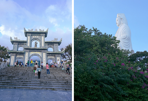 在峴港,最為顯著的建筑不是高樓大廈,而是位于山茶半島靈應(yīng)寺前的一座白玉觀音像。觀音像高67米,是整個(gè)東南最高的觀音像。綠之韻家人們?cè)谟^音像前駐足停留許久,仿佛在這里許下了對(duì)自己、對(duì)家人、對(duì)事業(yè)、對(duì)未來最美好的祝愿……