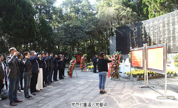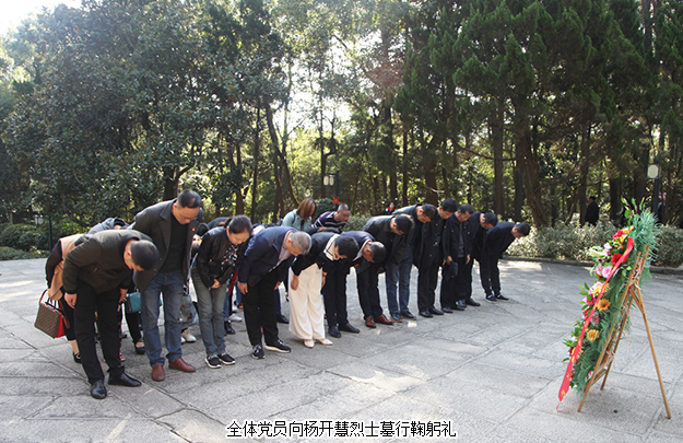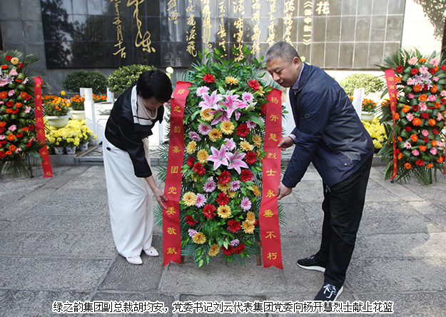 上午十時(shí)許,綠之韻集團(tuán)的黨員們驅(qū)車抵達(dá)開(kāi)慧鎮(zhèn)。黨員們首先來(lái)到了楊開(kāi)慧烈士的陵園前進(jìn)行悼念。陵園位于開(kāi)慧紀(jì)念館右側(cè)的棉花坡上,三面環(huán)山,墓的兩側(cè),各豎有漢白玉碑一塊。陵墓前,黨員們神情肅穆,分列為三排,面向陵園鞠躬默哀。隨后,綠之韻集團(tuán)副總裁胡均安,黨委書記劉云代表集團(tuán)黨委向楊開(kāi)慧烈士獻(xiàn)上花籃。
