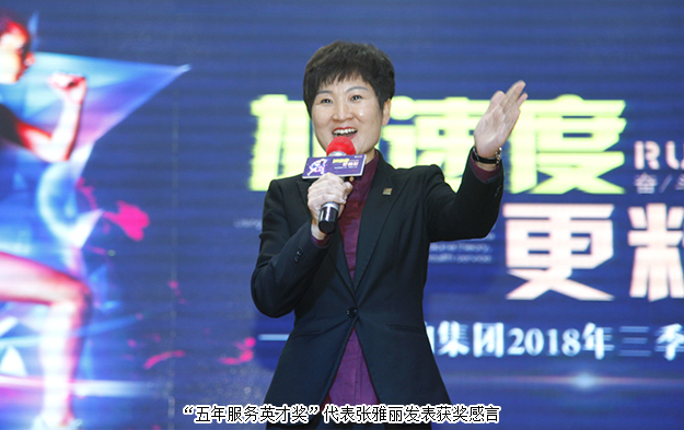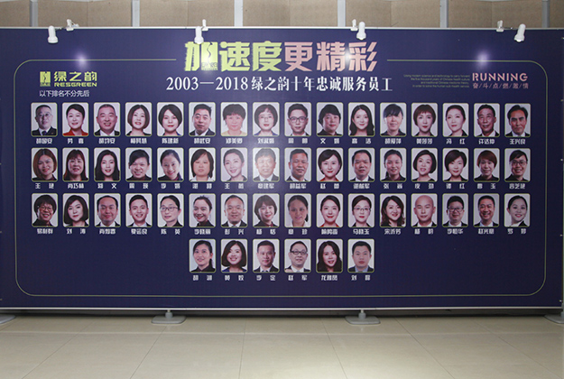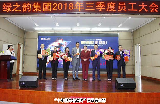 綠之韻集團(tuán)董事、總裁勞嘉在講話中首先向新入職員工,向第一次參加集團(tuán)員工大會的各位新領(lǐng)導(dǎo)、新分公司同事表示熱烈歡迎,向第三季度獲得優(yōu)秀稱號的集體與個(gè)人表示祝賀,向五年服務(wù)英才獎、十年服務(wù)忠誠獎獲得者表示祝賀和感謝。她在講話中指出,2018年前三個(gè)季度,在大家的共同努力、不懈奮斗下,公司各項(xiàng)工作都取得了比較好的成績。員工大會一直是綠之韻“家”文化的一種表現(xiàn)形式,只有認(rèn)同了公司的企業(yè)文化,才有可能走到一起,成為一家人。今天員工大會的主題為“加速度,更精彩”,加速度不僅是對我們的要求,更是一種激勵。感謝從2003年成立至今,一直踐行著自己事業(yè)初心,為綠之韻事業(yè)發(fā)展添磚加瓦的各位優(yōu)秀員工們。希望你們在未來,也能繼續(xù)嚴(yán)格執(zhí)行公司董事會的各項(xiàng)決策,有責(zé)任,有擔(dān)當(dāng),不忘初心,砥礪奮進(jìn),在第四季度圓滿完成公司各項(xiàng)既定目標(biāo),再創(chuàng)佳績。