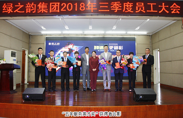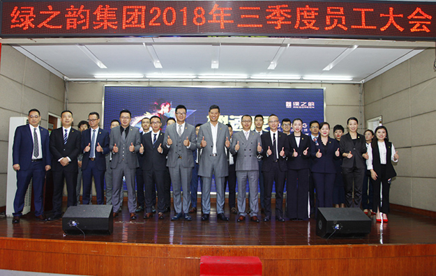 2018年10月15日,綠之韻集團(tuán)2018年第三季度員工大會暨五年服務(wù)英才獎、十年服務(wù)忠誠獎頒發(fā)儀式在綠之韻瀏陽國際大酒店成功舉行。綠之韻集團(tuán)董事長胡國安、董事總裁勞嘉、副董事長高宇攜集團(tuán)高管及全體員工參加會議。