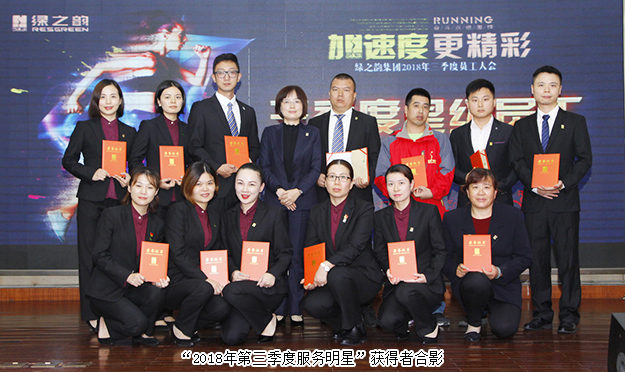 為表彰先進(jìn)、凝聚力量,進(jìn)一步激勵全體員工的積極性和奮斗激情,大會集中頒發(fā)了“三季度優(yōu)秀服務(wù)集體”“三季度服務(wù)明星”“五年服務(wù)英才獎”“十年服務(wù)忠誠獎”等獎項(xiàng)。市場管理中心、公共事務(wù)部、遼寧分公司、保安組榮獲“2018年第三季度優(yōu)秀集體”稱號;王艷、馮月超、張帥、楊恬、侯俊霞、楊邢軒、戴明玉、彭芳、劉靜、劉薇、康冠軍、戴明勇、肖巧林、劉燚淼被評為“2018年第三季度星級優(yōu)秀員工”;劉維利、曹兵、程瑤、張艷、徐燕燕、尹天弈、賀煒、顏洋、楊邢軒、張智皓、張雅麗榮膺“五年服務(wù)英才獎”;胡湖、黃姣、李定、趙軍、龍雅鳳、劉磊榮膺“十年服務(wù)忠誠獎”。綠之韻集團(tuán)總經(jīng)理劉維利,綠之韻集團(tuán)副董事長高宇,綠之韻集團(tuán)董事、總裁勞嘉先后上臺為獲獎員工頒發(fā)了獎?wù)屡c榮譽(yù)證書,并致以熱烈祝賀?!拔迥攴?wù)英才獎”代表張雅麗和“十年服務(wù)忠誠獎”代表龍雅鳳分別發(fā)表了獲獎感言。