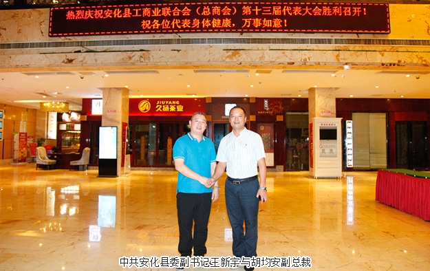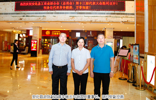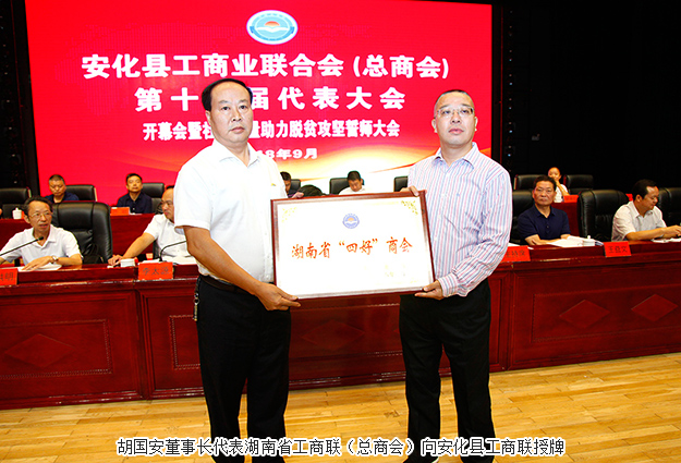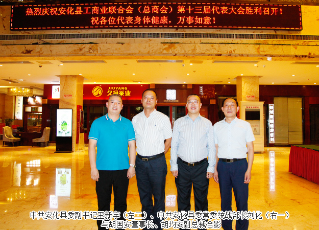 2018年9月12日,安化縣工商業(yè)聯(lián)合會(總商會)第十三屆會員代表大會召開。益陽市工商聯(lián)副主席黎洪明,中共安化縣委書記熊哲文,中共安化縣委副書記王新宇等領導出席會議。湖南省工商聯(lián)(總商會)副會長、長沙市安化商會會長、綠之韻集團董事長胡國安,長沙市安化商會副會長、綠之韻集團副總裁胡均安受邀參加會議。