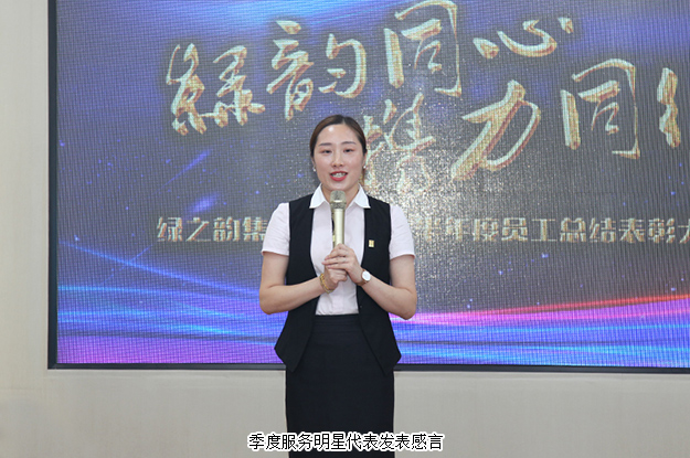 會議在全體職員整齊背誦《綠之韻工作宣言》的誦讀聲中拉開序幕。會上,上半年新入職的員工上臺做自我介紹,并獻上精心準備的節(jié)目表演,他們作為新鮮血液,進一步增強了公司的創(chuàng)造與創(chuàng)新能力。本次會議以“綠韻同心·攜力同行”為主題,綠之韻集團總理劉維利就上半年市場管理及服務(wù)情況作總結(jié)匯報。