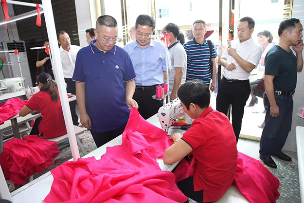 在驛頭鋪村考察期間,調(diào)研組一行先后考察了村內(nèi)的扶貧服裝車間、光彩同心·綠之韻村民活動(dòng)廣場(chǎng),并組織召開脫貧攻堅(jiān)專題座談會(huì),聽取了駐村幫扶工作隊(duì)隊(duì)長(zhǎng)、高明鄉(xiāng)黨委書記、驛頭鋪村黨支部書記的扶貧工作匯報(bào)。彭繼球指出,長(zhǎng)沙益陽(yáng)是山水相連、人文相近、經(jīng)濟(jì)相融的兄弟城市。此次安化行活動(dòng)精準(zhǔn)對(duì)接產(chǎn)業(yè)、精邀對(duì)接企業(yè)、精選扶貧項(xiàng)目,是一次鄉(xiāng)村振興戰(zhàn)略的生動(dòng)實(shí)踐,是產(chǎn)業(yè)對(duì)接的光彩行動(dòng),是兩市融合發(fā)展的具體行動(dòng)。各位扶貧工作責(zé)任人、各位企業(yè)家要心貼心、點(diǎn)對(duì)點(diǎn)、面對(duì)面,把扶貧項(xiàng)目和產(chǎn)業(yè)對(duì)接落實(shí)、落地和落細(xì)。