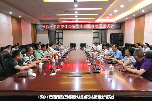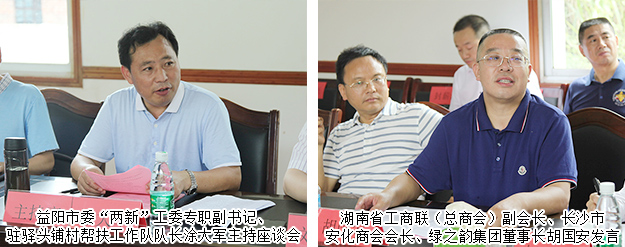 2018年7月4—5日,中共益陽(yáng)市委常委、組織部長(zhǎng)何俊峰,長(zhǎng)沙市政協(xié)副主席、市工商聯(lián)主席彭繼球,益陽(yáng)市工商聯(lián)主席劉方軍,長(zhǎng)沙市工商聯(lián)副主席劉立紅,湖南省工商聯(lián)(總商會(huì))副會(huì)長(zhǎng)、長(zhǎng)沙市安化商會(huì)會(huì)長(zhǎng)、綠之韻集團(tuán)董事長(zhǎng)胡國(guó)安以及省會(huì)民營(yíng)企業(yè)家代表一行赴湖南安化開展產(chǎn)業(yè)扶貧調(diào)研工作。中共安化縣委副書記王新宇,中共安化縣委常委、組織部長(zhǎng)陳飛燕,安化縣人民政府副縣長(zhǎng)譚羅垠,安化縣政協(xié)副主席、縣工商聯(lián)主席李艷云等陪同調(diào)研。