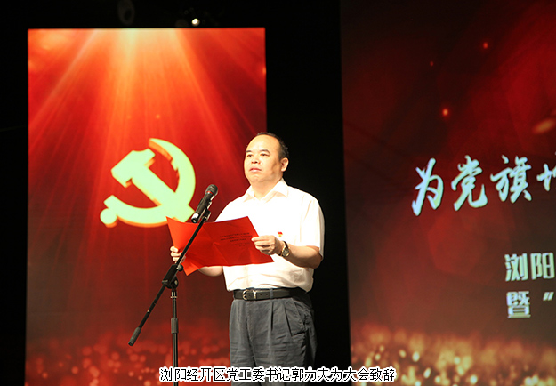 瀏陽經(jīng)開區(qū)黨工委書記郭力夫為大會致辭。他在講話中說道,他首先代表瀏陽經(jīng)開區(qū)黨工委向受到表彰的黨建示范點和優(yōu)秀共產(chǎn)黨員表示熱烈的祝賀,向全區(qū)奮戰(zhàn)在工作一線的數(shù)千名共產(chǎn)黨員和離退休黨員致以節(jié)日的問候。他表示,此次表彰活動旨在進一步貫徹落實黨的十九大精神,高舉新時代中國特色社會主義思想的偉大旗幟,促進園區(qū)高質(zhì)量發(fā)展,匯聚磅礴力量。未來,瀏陽經(jīng)開區(qū)將繼續(xù)堅持黨建引領(lǐng),推動園區(qū)轉(zhuǎn)型升級,著力打好三大攻堅戰(zhàn),加快實現(xiàn)質(zhì)量變革、效力變革,動力變革,在園區(qū)能夠快速學(xué)先進,做表率,創(chuàng)一流的風(fēng)潮,以實際行動為黨旗爭輝添彩,為發(fā)展建功立業(yè)。隨后,與會領(lǐng)導(dǎo)為獲得表彰的單位和個人進行了頒獎。