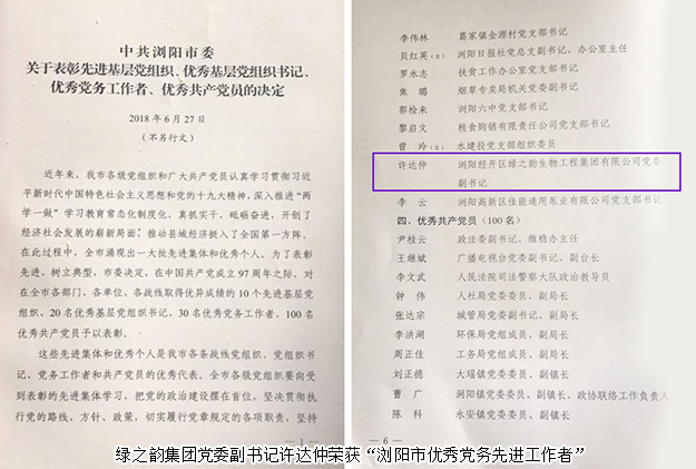 2018年6月29日,瀏陽經(jīng)開區(qū)慶祝中國共產(chǎn)黨建黨97周年暨“黨建示范點 優(yōu)秀共產(chǎn)黨員”表彰活動在園區(qū)金陽文化藝術(shù)中心舉行。長沙市委組織部副部長、長沙市兩新工委書記、長沙市績效辦主任易敏華,長沙市兩新工委辦公室主任楊立志;瀏陽經(jīng)開區(qū)黨工委書記郭力夫,瀏陽經(jīng)開區(qū)黨工委副書記、管委會主任談文昌等領(lǐng)導(dǎo)參加會議。綠之韻集團黨委書記劉云帶領(lǐng)集團優(yōu)秀黨員和2018年度新發(fā)展的預(yù)備黨員參加會議。會上,綠之韻集團保健日用品支部憑借出色的黨建工作被評為“黨建示范點”。綠之韻集團黨委副書記許達仲榮獲“瀏陽市優(yōu)秀黨務(wù)先進工作者”。