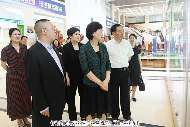 調(diào)研過程中,中共湖南省委常委、省委統(tǒng)戰(zhàn)部部長黃蘭香一行先后參觀了綠之韻集團黨建文化教育基地、職工之家以及多功能產(chǎn)品展示廳。在公司多功能產(chǎn)品展示廳,綠之韻“韻宜生”“綠韻蘭茜”“享居”等系列產(chǎn)品引起了各位領導的濃厚興趣。胡國安董事長介紹到,自創(chuàng)立以來,綠之韻堅持“以產(chǎn)品為導向”的發(fā)展理念,所推出的產(chǎn)品都緊緊圍繞綠色、天然和“清調(diào)補衡”養(yǎng)生理念,以產(chǎn)、學、研結合為模式先后與多所國家重點大學、科研院所達成戰(zhàn)略合作,聚集了一支以工程院院士、專家教授為骨干的產(chǎn)品研發(fā)團隊。為確保產(chǎn)品品質(zhì),綠之韻立足服務三農(nóng),以遍布全國的六大生產(chǎn)基地為重要依托,從原料、研發(fā)、生產(chǎn)、物流和銷售等環(huán)節(jié)層層把關,著力打造綠之韻大健康全產(chǎn)業(yè)鏈。公司生產(chǎn)的蘆薈膠、螺旋藻、日用品等系列產(chǎn)品暢銷十多年,依然為消費者津津樂道?!秉S蘭香部長一邊聆聽匯報,一邊仔細詢問企業(yè)生產(chǎn)經(jīng)營情況。