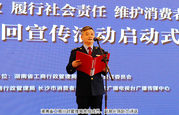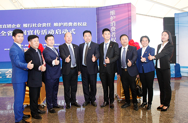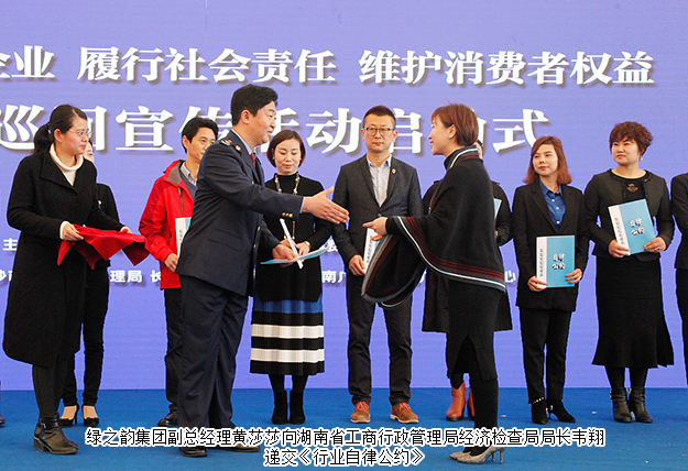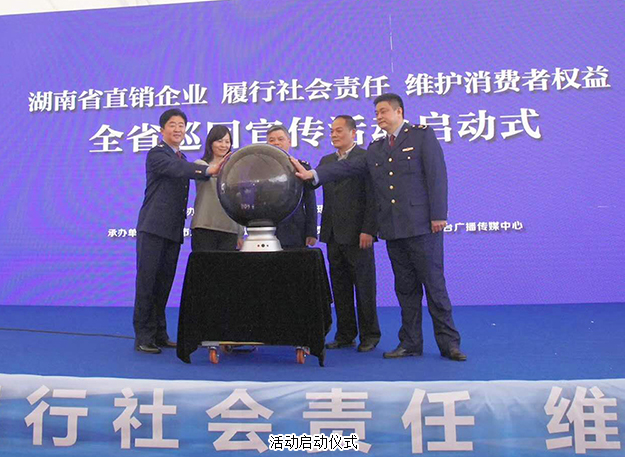 2018年3月14日,湖南省直銷企業(yè)“履行社會(huì)責(zé)任、維護(hù)消費(fèi)者權(quán)益”全省巡回宣傳活動(dòng)啟動(dòng)儀式在長沙舉行。湖南省工商行政管理局黨組成員、副局長陳躍文,湖南省消費(fèi)者委員會(huì)副秘書長張前,湖南省工商行政管理局經(jīng)濟(jì)檢查局局長韋翔,湖南人民廣播電臺(tái)副臺(tái)長楊清,湖南省工商行政管理局經(jīng)濟(jì)檢查局副局長肖向陽等領(lǐng)導(dǎo)嘉賓蒞臨現(xiàn)場。綠之韻集團(tuán)董事、總裁勞嘉,副總經(jīng)理黃莎莎、夏運(yùn)良,湖南分公司經(jīng)理劉磊帶領(lǐng)部分員工和經(jīng)銷商代表參加此次活動(dòng)。