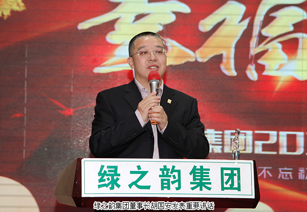 在全場(chǎng)熱烈的掌聲中,綠之韻集團(tuán)董事長(zhǎng)胡國(guó)安發(fā)表重要講話。他向全體銳意進(jìn)取、開(kāi)拓創(chuàng)新的綠之韻家人致以最誠(chéng)摯的新年祝福,給所有獲獎(jiǎng)?wù)哂枰粤烁叨仍u(píng)價(jià)。他總結(jié)了綠之韻集團(tuán)十五年的發(fā)展歷程,深情闡述自己的創(chuàng)業(yè)經(jīng)歷和創(chuàng)業(yè)精神。他表示:2017年是非常不平凡的一年,能將種種不可能變?yōu)榭赡埽康氖穷B強(qiáng)的毅力和不懈的奮斗。我們?yōu)榱斯餐膲?mèng)想和幸福,并肩戰(zhàn)斗。我們也在奮斗中享受幸福、感知幸福。2018年綠之韻將始終堅(jiān)持三個(gè)“不改變”:即長(zhǎng)期為廣大經(jīng)銷商提供質(zhì)高品優(yōu)的產(chǎn)品不改變,維護(hù)經(jīng)銷商的利益、堅(jiān)持“永續(xù)經(jīng)營(yíng)、合作共贏”的理念不改變,對(duì)于市場(chǎng)扶持的投資不改變,讓所有綠之韻人共享企業(yè)發(fā)展成果。近年來(lái),湖南省和長(zhǎng)沙市連續(xù)發(fā)布《關(guān)于支持非公有制經(jīng)濟(jì)健康發(fā)展的十條意見(jiàn)》《建設(shè)國(guó)家智能制造中心(2017-2019)三年行動(dòng)計(jì)劃》《長(zhǎng)沙市人民政府關(guān)于發(fā)展資本市場(chǎng)的若干意見(jiàn)》以及“長(zhǎng)沙工業(yè)30條”“人才新政20條”等多項(xiàng)促進(jìn)非公經(jīng)濟(jì)發(fā)展、鼓勵(lì)扶持民營(yíng)企業(yè)發(fā)展的利好政策,綠之韻將積極研究企業(yè)發(fā)展新措施和新方法,充分發(fā)揮出綠色大健康全產(chǎn)業(yè)鏈優(yōu)勢(shì),助力中醫(yī)藥產(chǎn)業(yè)、健康中國(guó)和湖南“一帶一路”戰(zhàn)略發(fā)展,科學(xué)謀劃,在未來(lái)五年,全力打造3—5家上市公司,提升公司整體盈利水平和市場(chǎng)競(jìng)爭(zhēng)力。他鼓勵(lì)大家要?jiǎng)?wù)實(shí)創(chuàng)新,科學(xué)發(fā)展,在綠之韻未來(lái)“大品牌、大健康、大金融”三大平臺(tái)中找到奮斗中的幸福。