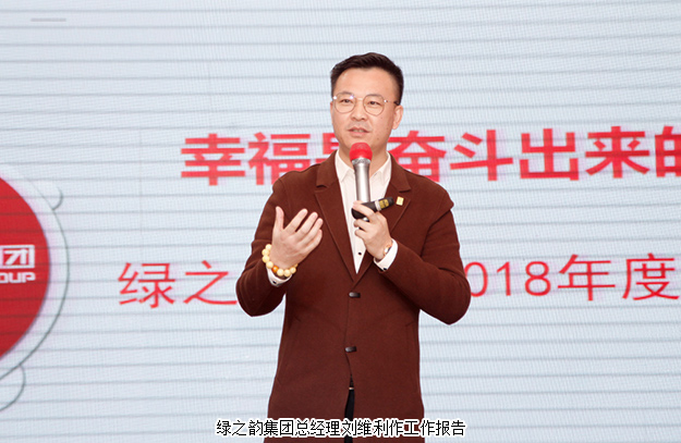 十五年來(lái),走過(guò)風(fēng)雨,締造輝煌,在通往“百年企業(yè)、世界名牌”的道路上,綠之韻人感恩惟馨,一路前行,用激情、責(zé)任、擔(dān)當(dāng)和智慧,開(kāi)拓屬于我們自己的“中國(guó)夢(mèng)、綠之韻夢(mèng)”。會(huì)上,綠之韻集團(tuán)總經(jīng)理劉維利就2017年度市場(chǎng)工作進(jìn)行總結(jié),并簡(jiǎn)要闡述了2018年集團(tuán)市場(chǎng)發(fā)展規(guī)劃。2017年我們圍繞“大品牌、大健康、大金融”九字戰(zhàn)略方針,平穩(wěn)健康有序的發(fā)展,滿懷信心,朝著更高的目標(biāo)邁進(jìn)。2018年我們共同恪守核心價(jià)值觀和使命,延續(xù)五年戰(zhàn)略目標(biāo),打造雙百億工程,改變戰(zhàn)術(shù),升級(jí)完善服務(wù)、平臺(tái)、運(yùn)營(yíng)模式、產(chǎn)品、物流體系五大策略,為市場(chǎng)和諧發(fā)展保駕護(hù)航,創(chuàng)造新的輝煌!