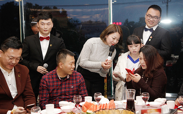 萬(wàn)眾期待的抽獎(jiǎng)環(huán)節(jié)讓全場(chǎng)心弦緊扣。此次新春團(tuán)拜會(huì),集團(tuán)公司全體員工準(zhǔn)備了豐盛的獎(jiǎng)品,大家觀看著精彩節(jié)目,滿懷信心與期待地參與每一次的抽獎(jiǎng)。新春團(tuán)拜會(huì)最后由胡國(guó)安董事長(zhǎng)現(xiàn)場(chǎng)抽取驚喜現(xiàn)金大禮,為家人們送去好運(yùn)與祝福。同時(shí),在2018金犬福年到來(lái)之際,主持人代表全體綠之韻家人給胡國(guó)安董事長(zhǎng)及其他幾位幸運(yùn)的家人獻(xiàn)上本命年“紅色”禮品,現(xiàn)場(chǎng)溫情流動(dòng),將整場(chǎng)晚會(huì)推向最高潮。