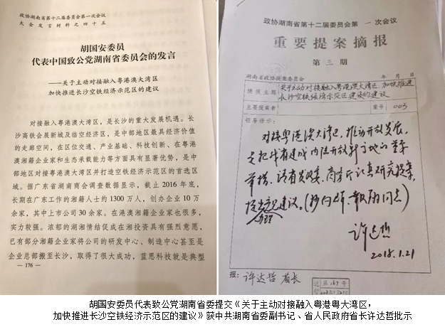 大會期間,1月24日《人民日報》刊文《將持續(xù)開放養(yǎng)老服務市場,支持養(yǎng)老產業(yè)發(fā)展》,指出2018年我國將繼續(xù)推進醫(yī)養(yǎng)結合試點。胡國安委員在省政協十二屆一次會議上提交的《關于推行“醫(yī)養(yǎng)護一體化”健康養(yǎng)老模式的建議》的提案與之完美契合,體現人民群眾心聲。針對湖南省養(yǎng)老問題及現狀,胡國安委員建議采取公建民營、民辦公助、民辦民營、政府補貼、購買服務等多元資金投入和經營運作模式,逐步使社會力量成為湖南省發(fā)展養(yǎng)老服務業(yè)的主體,受到了湖南衛(wèi)視、湖南經視、湖南政協新聞網、騰訊、《長沙晚報》、紅網、《瀟湘晨報》、新湖南、湘聲報、星辰在線等多家媒體的持續(xù)聚焦報道。同時,胡國安委員代表致公黨湖南省委提交的集體提案《關于主動對接融入粵港澳大灣區(qū),加快推進長沙空鐵經濟示范區(qū)建設的建議》獲湖南省人民政府省長許達哲重要批示,并受到中共湖南省委書記、省人大常委會主任杜家毫親切接見,令人信心倍增,振奮不已。