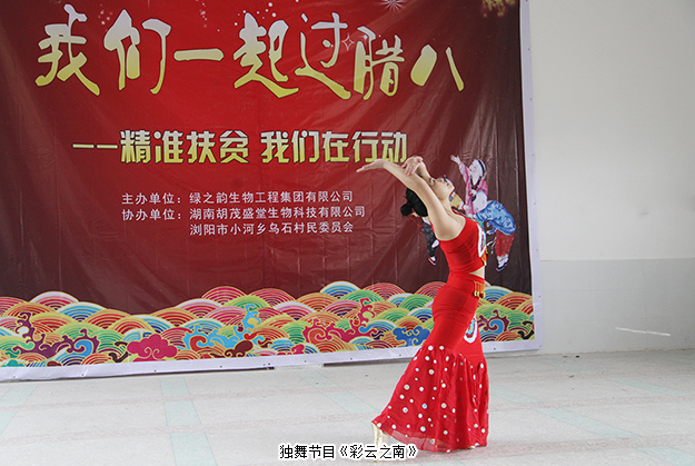 今天的“我們一起過臘八”活動內(nèi)容豐富,形式多樣,有綠之韻集團情感迸發(fā)的《精準扶貧,我們在行動》朗誦,有充滿情懷的文藝歌舞《十送紅軍》,有精彩的獨舞節(jié)目《彩云之南》,有寓意十足的《精準扶貧》小品,更有幫扶愛心企業(yè)與烏石村群眾互動配合游戲《愛的抱抱》。一個個精彩的節(jié)目,充分展示了大家昂揚樂觀、積極進取的精神風貌,溫暖著小河鄉(xiāng)的每一個村民,也為烏石村、乃至全鄉(xiāng)精準扶貧工作注入了新的活力。小河鄉(xiāng)在黨中央“脫貧攻堅”春風的吹拂下,在各級黨委政府的關心和幫助下,必將走向更加美好的明天!