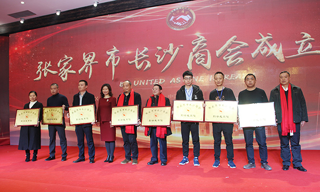 2018年1月16日,在鼓聲、獅舞的濃厚喜慶氛圍中,張家界市長(zhǎng)沙商會(huì)成立大會(huì)在張家界隆重舉行。中共張家界市委書記、市人大常委會(huì)主任虢正貴,中共張家界市委常委、市政法委書記劉樺,中共張家界市委常委單鋾飛,中共張家界市委秘書長(zhǎng)、市委辦主任沈刻明,張家界市人民政府副市長(zhǎng)歐陽斌等市委、市政府、市人大、市政協(xié)領(lǐng)導(dǎo)、市直部門負(fù)責(zé)人;長(zhǎng)沙市委顧問、長(zhǎng)沙市人大常委會(huì)原主任余合泉,長(zhǎng)沙市人民政府原市長(zhǎng)袁漢坤,長(zhǎng)沙市政協(xié)原秘書長(zhǎng)謝國(guó)斌,長(zhǎng)沙市委、市政府、市工商聯(lián)等單位領(lǐng)導(dǎo)出席了成立大會(huì);各專業(yè)商會(huì)、協(xié)會(huì),各兄弟商會(huì),省、市企業(yè)代表,張家界市長(zhǎng)沙商會(huì)會(huì)員、新聞媒體等近400人參加了大會(huì)。綠之韻集團(tuán)黨委書記劉云代表集團(tuán)公司出席活動(dòng)。