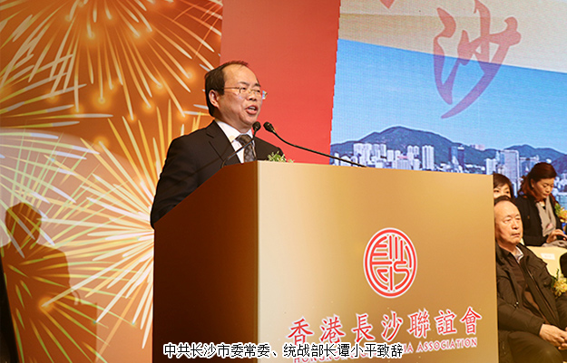 中共長(zhǎng)沙市委常委、市委統(tǒng)戰(zhàn)部部長(zhǎng)譚小平在致辭中介紹了長(zhǎng)沙市今年經(jīng)濟(jì)社會(huì)發(fā)展取得的成就,并希望各位鄉(xiāng)友高舉愛(ài)國(guó)愛(ài)港旗幟,推動(dòng)香港繁榮穩(wěn)定,遏制“港獨(dú)”勢(shì)力。香港長(zhǎng)沙聯(lián)誼會(huì)要主動(dòng)服務(wù),聯(lián)絡(luò)團(tuán)結(jié)各位鄉(xiāng)友凝心聚力,互幫互助,共謀發(fā)展;各位鄉(xiāng)友要關(guān)心支持家鄉(xiāng)建設(shè),關(guān)注家鄉(xiāng)變化,?;丶铱纯矗e極為家鄉(xiāng)發(fā)展獻(xiàn)策出力,回鄉(xiāng)投資創(chuàng)業(yè);要搭建長(zhǎng)沙與香港合作交流的橋梁,利用各位鄉(xiāng)友的資源優(yōu)勢(shì),共同為推動(dòng)兩地交流合作做出新貢獻(xiàn)。