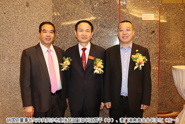 慶祝香港回歸20周年暨香港長(zhǎng)沙聯(lián)誼會(huì)成立周年慶典期間,由中共長(zhǎng)沙市委常委、統(tǒng)戰(zhàn)部長(zhǎng)譚小平帶隊(duì),中共長(zhǎng)沙市委統(tǒng)戰(zhàn)部副部長(zhǎng)、市僑聯(lián)主席王國(guó)平,中共瀏陽(yáng)市委常委、統(tǒng)戰(zhàn)部長(zhǎng)郭瑞,中共長(zhǎng)沙市委統(tǒng)戰(zhàn)部聯(lián)絡(luò)處處長(zhǎng)李燁,長(zhǎng)沙市海外聯(lián)誼會(huì)副會(huì)長(zhǎng)、香港長(zhǎng)沙聯(lián)誼會(huì)名譽(yù)會(huì)長(zhǎng)、綠之韻集團(tuán)董事長(zhǎng)胡國(guó)安等一行赴霍英東集團(tuán)參觀交流?;粲|集團(tuán)在香港工商界享有盛名,積極投身祖國(guó)改革開(kāi)放和現(xiàn)代化建設(shè)事業(yè),長(zhǎng)期致力于香港繁榮穩(wěn)定發(fā)展,受到黨和國(guó)家的充分肯定,創(chuàng)造了華人家族的一個(gè)傳奇。胡國(guó)安董事長(zhǎng)與霍英東集團(tuán)行政總裁霍震寰先生就當(dāng)前世界經(jīng)濟(jì)形勢(shì)、國(guó)際金融政策、香港內(nèi)地經(jīng)濟(jì)文化交流等熱點(diǎn)話題進(jìn)行了深入交流和探討,雙方共敘友誼、相談甚歡。胡國(guó)安董事長(zhǎng)盛情邀請(qǐng)霍震寰先生赴湘興業(yè),加大投資力度,進(jìn)一步推動(dòng)深化港湘經(jīng)濟(jì)交流合作,共同為推動(dòng)兩地經(jīng)濟(jì)社會(huì)文化繁榮發(fā)展獻(xiàn)智出力,再立新功!