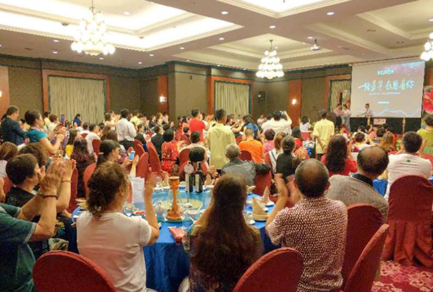 夜晚的馬來西亞別具風(fēng)情。來到馬來西亞的第一站,綠之韻家人們下榻馬來西亞麗晟大酒店。正值感恩節(jié),家人在這里收到驚喜而尊貴的感恩晚宴。晚宴現(xiàn)場,麗晟大酒店集團(tuán)副總裁單洪明(chan hong ming音譯)致歡迎詞,綠之韻集團(tuán)總經(jīng)理劉維利與麗晟酒店代表交換象征友誼的禮物,活動(dòng)現(xiàn)場還為7位過生日的綠之韻家人準(zhǔn)備了生日驚喜,家人們品著美酒和美食,彼此分享旅途的見聞,現(xiàn)場一片歡聲笑語,感動(dòng)和驚喜交織成美麗的夜曲,飄揚(yáng)在異國他鄉(xiāng)的城市上空。