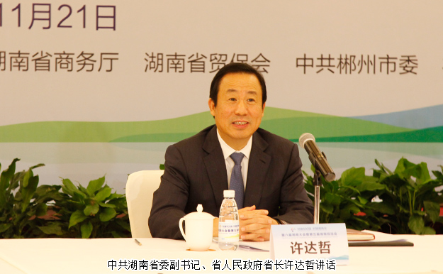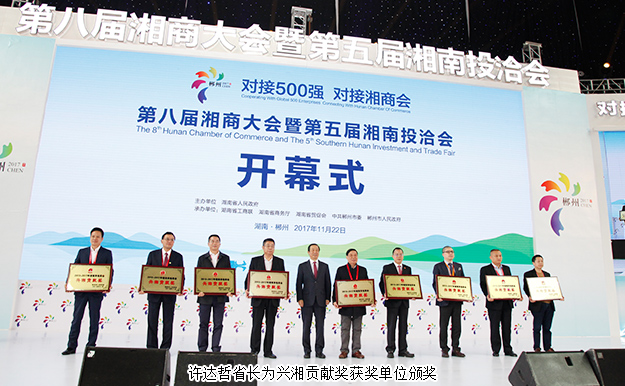 開(kāi)幕式上,湖南省人民政府副省長(zhǎng)何報(bào)翔作省情推介,中共湖南省委副書(shū)記、省人民政府省長(zhǎng)許達(dá)哲出席開(kāi)幕式并為興湘貢獻(xiàn)獎(jiǎng)獲獎(jiǎng)單位頒獎(jiǎng)。許達(dá)哲省長(zhǎng)在講話中表示,湖南自古以來(lái)英才輩出,有著深厚的文化和歷史底蘊(yùn),廣大的湘商傳承著湖湘文化的精髓,涌現(xiàn)了一批又一批的商界精英。自2007年由省人民政府在長(zhǎng)沙主辦了首屆湘商大會(huì),10年來(lái),湘商已成為湖南的一張獨(dú)特的商業(yè)文化名片,湘商大會(huì)、湘南投洽會(huì)成為我省一年一度的重大經(jīng)貿(mào)活動(dòng),也是我省擴(kuò)大開(kāi)放、加大招商引資、促進(jìn)區(qū)域經(jīng)濟(jì)合作的重大平臺(tái),更是深入實(shí)施“創(chuàng)新引領(lǐng)、開(kāi)放崛起”戰(zhàn)略,加快推進(jìn)“對(duì)接500強(qiáng)、提升產(chǎn)業(yè)鏈”及“對(duì)接湘商會(huì)、建設(shè)新家鄉(xiāng)”等專項(xiàng)行動(dòng)的重要舉措。新時(shí)代新湘商,在日新月異的今天,湘商華麗轉(zhuǎn)身,發(fā)展出“責(zé)任、創(chuàng)新、務(wù)實(shí)、和諧、誠(chéng)信”的新湘商文化精神。湘商大會(huì)也成為了湖南每年一度的經(jīng)濟(jì)盛宴和重要的項(xiàng)目孵化器,是各地成功湘商緊密聚首、交流合作的一面精神旗幟。他希望,廣大湘商能夠在湖南這片投資熱土上創(chuàng)業(yè)興業(yè),繼續(xù)為家鄉(xiāng)的建設(shè)發(fā)展獻(xiàn)計(jì)獻(xiàn)力,與湖南一起把握發(fā)展機(jī)遇,在推動(dòng)湖南發(fā)展的同時(shí),將企業(yè)做大、做強(qiáng)、做優(yōu),實(shí)現(xiàn)共贏發(fā)展;與家鄉(xiāng)人民一道,共建富饒美麗幸福新湖南。