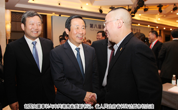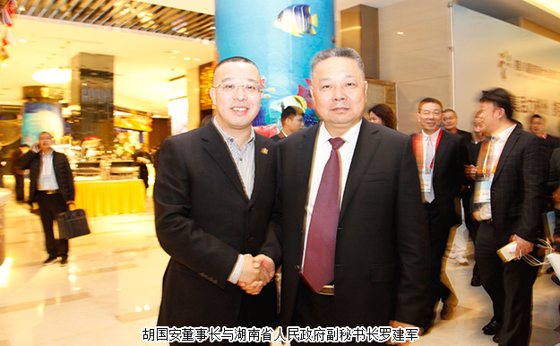 天下湘商聚郴州,攜手共創(chuàng)新時(shí)代。2017年11月21-24日,2017湖南經(jīng)濟(jì)合作洽談會(huì)暨第八屆湘商大會(huì)、第五屆湘南投洽會(huì)在湖南郴州隆重舉行。中共湖南省委副書(shū)記、省人民政府省長(zhǎng)許達(dá)哲,湖南省人大常委會(huì)副主任陳君文,湖南省人民政府副省長(zhǎng)何報(bào)翔,湖南省政協(xié)副主席張大方,湖南省人民政府副秘書(shū)長(zhǎng)羅建軍,中共郴州市委副書(shū)記、市長(zhǎng)劉志仁等領(lǐng)導(dǎo)出席活動(dòng)。湖南省工商聯(lián)(總商會(huì))副會(huì)長(zhǎng)、綠之韻集團(tuán)董事長(zhǎng)胡國(guó)安與藍(lán)思科技董事長(zhǎng)周群飛、華大基因董事長(zhǎng)汪建、吉祥人壽董事長(zhǎng)周濤、香港銅鑼灣集團(tuán)董事副總裁李濟(jì)華等優(yōu)秀企業(yè)家們一起應(yīng)邀參加活動(dòng),與來(lái)自多家世界500強(qiáng)、中國(guó)500強(qiáng)、中國(guó)民營(yíng)500強(qiáng)企業(yè)和海內(nèi)外200多家湖南異地商會(huì)2000余名湘商精英齊聚郴州,縱論湘商發(fā)展大計(jì)。