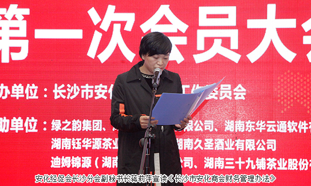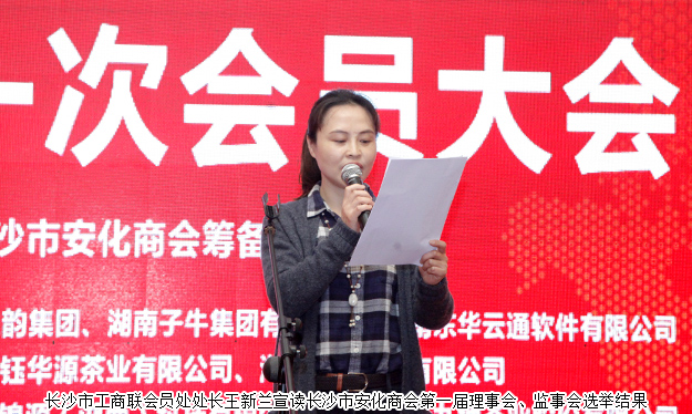 2017年11月12日,長沙市安化商會第一次會員代表大會在長沙召開。長沙市工商聯(lián)副主席、長沙市商協(xié)會組織聯(lián)合黨組書記張明剛,長沙市工商聯(lián)會員處處長王新蘭,長沙市工商聯(lián)會員處副處長黃春順;長沙市社會組織管理局副局長李巨浪,長沙市社會組織管理局主任覃仁咸;安化縣政協(xié)副主席、縣工商聯(lián)主席李艷云,安化縣工商聯(lián)副主席、總商會副會長夏剛花,安化縣工商聯(lián)非公企業(yè)服務(wù)中心主任夏炎,安化經(jīng)促會長沙分會會長李蒲初出席會議。湖南省工商聯(lián)(總商會)副會長、綠之韻集團(tuán)董事長胡國安出席會議,并當(dāng)選第一屆長沙市安化商會會長。綠之韻集團(tuán)常務(wù)副總經(jīng)理胡均安當(dāng)選副會長,綠之韻集團(tuán)副總經(jīng)理夏運(yùn)良當(dāng)選第一屆理事。