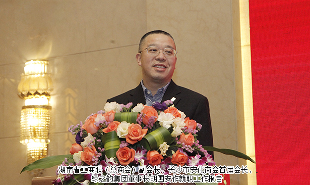 隨后,長沙市安化商會首屆會長胡國安向大會作就職工作報告。他首先向一直以來關(guān)心和支持長沙市安化商會籌建工作的各位領(lǐng)導(dǎo)和在商會籌建過程中辛勤付出的各位鄉(xiāng)友、同仁致以崇高的敬意和衷心的感謝。他在報告中對商會今后的發(fā)展提出了以下幾點(diǎn)意見:一要將安化商會打造成“學(xué)習(xí)型現(xiàn)代商會”,為商會會員搭建學(xué)習(xí)平臺,促進(jìn)商會的健康可持續(xù)發(fā)展;二要讓商會在長沙生根發(fā)芽,把商會打造成安化人的家園;三要將商會打造成一個互幫互助的平臺,讓商會會員企業(yè)通過商會這個平臺得到充分拓展。胡國安董事長進(jìn)一步表示,此次成功當(dāng)選長沙市安化商會首屆會長,既是榮譽(yù),也是責(zé)任,安化商會的健康發(fā)展離不開各級領(lǐng)導(dǎo)的大力支持和關(guān)懷,離不開社會各界的關(guān)注,更離不開廣大會員、企業(yè)家們的信任與合作,希望商會的各位會員和企業(yè)家們,能在新時代中國特色社會主義思想的指引下,不忘初心,牢記使命,發(fā)揚(yáng)安化企業(yè)家“精誠團(tuán)結(jié)、互幫互助”的精神,一起為國家的繁榮富強(qiáng),為長沙市、安化縣社會經(jīng)濟(jì)發(fā)展貢獻(xiàn)力量,展示出長沙市安化商會企業(yè)家的風(fēng)采!
