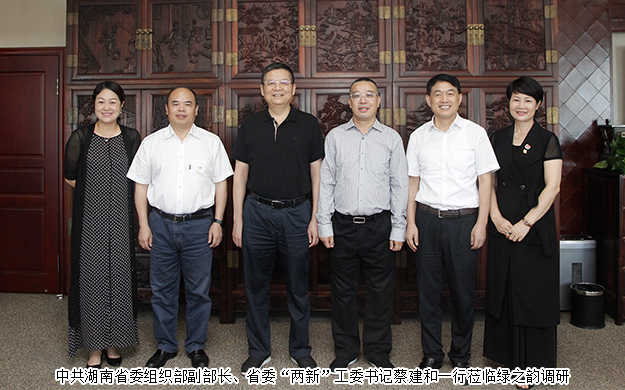 為加強(qiáng)非公經(jīng)濟(jì)黨組織建設(shè),引導(dǎo)非公經(jīng)濟(jì)健康發(fā)展和非公經(jīng)濟(jì)人士健康成長(zhǎng),大力營(yíng)造濃厚的黨建工作氛圍,2017年9月26日,中共湖南省委組織部副部長(zhǎng)、省委“兩新”工委書記蔡建和,中共湖南省委“兩新”工委辦公室主任蔡文輝一行蒞臨綠之韻集團(tuán)調(diào)研。中共長(zhǎng)沙市委常委、組織部長(zhǎng)張宏益,中共長(zhǎng)沙市委“兩新”工委專職副書記肖劍鋒,瀏陽(yáng)經(jīng)開(kāi)區(qū)黨工委書記郭力夫,瀏陽(yáng)經(jīng)開(kāi)區(qū)黨工委委員、管委會(huì)副主任鄒先瑜,瀏陽(yáng)經(jīng)開(kāi)區(qū)黨工委委員、紀(jì)工委書記肖賽男等陪同調(diào)研。綠之韻集團(tuán)董事長(zhǎng)胡國(guó)安,董事總裁勞嘉,黨委書記劉云、副書記許達(dá)仲等全程陪同。
