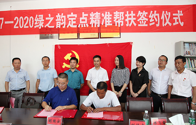 “秋老虎”的炎炎暑氣擋不住結(jié)對幫扶的絲絲溫情,舟車勞頓擋不住共謀發(fā)展的拳拳熱心。為了積極響應(yīng)長沙市委市政府“百企連百戶”活動號召,2017年9月18日,綠之韻集團(tuán)走進(jìn)瀏陽市小河鄉(xiāng)烏石村開展點(diǎn)對點(diǎn)幫扶活動,長沙市政協(xié)辦公廳副調(diào)研員兼機(jī)關(guān)黨委專職副書記黃領(lǐng)先,瀏陽經(jīng)開區(qū)黨群工作局局長、企業(yè)黨委專職副書記陳飛雪,瀏陽市小河鄉(xiāng)黨委書記劉林志,烏石村第一書記鄧水平等領(lǐng)導(dǎo)參加活動。湖南省政協(xié)委員、湖南省工商聯(lián)(總商會)副會長、綠之韻集團(tuán)董事長胡國安,綠之韻集團(tuán)黨委書記劉云、副書記許達(dá)仲出席簽約儀式,并為點(diǎn)對點(diǎn)幫扶家庭掛牌。
