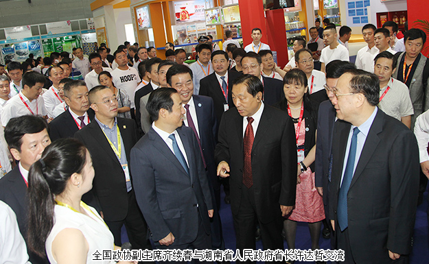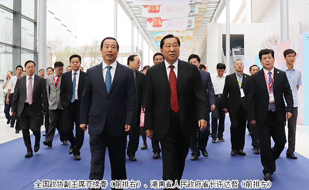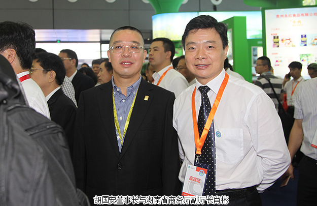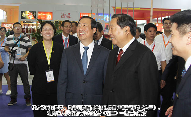 2017年9月14日,由商務(wù)部和湖南省人民政府共同主辦的中國食品餐飲業(yè)創(chuàng)新發(fā)展大會暨2017中國食品餐飲博覽會(以下簡稱食餐會)在長沙隆重啟幕。全國政協(xié)副主席齊續(xù)春、商務(wù)部副部長王炳南、湖南省人民政府省長許達哲、中共湖南省委常委、長沙市委書記胡衡華,廣西壯族自治區(qū)人大常委會副主任高雄,湖南省人民政府副省長何報翔,湖南省政協(xié)原副主席劉曉,澳門投資促進局主席張祖榮等領(lǐng)導(dǎo)出席活動。湖南省工商聯(lián)(總商會)副會長、綠之韻集團董事長胡國安,湖南省工商聯(lián)女商會副會長、綠之韻集團董事、總裁勞嘉受邀出席開幕式,并在開幕式前陪同全國政協(xié)副主席齊續(xù)春、商務(wù)部副部長王炳南、湖南省人民政府省長許達哲等領(lǐng)導(dǎo)一行巡視展館。