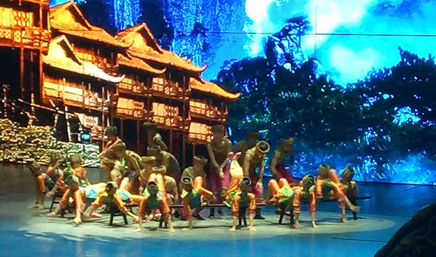 入夜的張家界微風(fēng)輕拂,風(fēng)情十足。綠之韻家人們乘著月色前往觀看“煙雨張家界”大型文藝節(jié)目?!盁熡陱埣医纭笔窍嫖魑幕目s影,在保留湘西原生態(tài)民俗文化的前提下,將民族音樂和舞蹈與聲、光、電完美結(jié)合,讓觀眾欣賞到一頓原汁原味的湘西文化大餐,是當(dāng)?shù)厣贁?shù)民族風(fēng)俗的靈魂。綠之韻伙伴們興高采烈地盡情觀賞,大飽眼福,直到節(jié)目結(jié)束都意猶未盡。