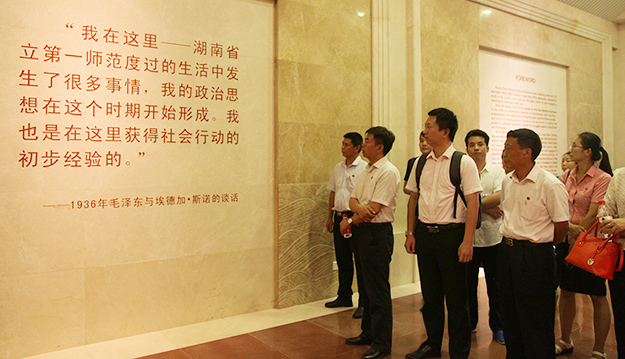 一踏入校門,一種歷史厚重感迎面而來,這里的一草一幕似乎都在訴說著學(xué)院的歷史,那些青磚白瓦的建筑見證了一代代人的成長。在中共長沙市委黨校馬列教研部副主任、中央黨校博士周偉東的講解下,大家進(jìn)一步地了解毛澤東同志在學(xué)校期間的思想成長,以及其嚴(yán)謹(jǐn)作風(fēng)的養(yǎng)成經(jīng)歷,感受一師濃厚的學(xué)習(xí)氛圍和前輩們留下的革命氣息。黨員們參觀后紛紛表示,一定要向老一輩革命家學(xué)習(xí),在任何情況下都牢記黨的宗旨,積極工作,擼起袖子加油干,始終保持黨員的初心,邁出堅(jiān)定的步伐,為實(shí)現(xiàn)中華民族偉大復(fù)興的中國夢而努力奮斗。